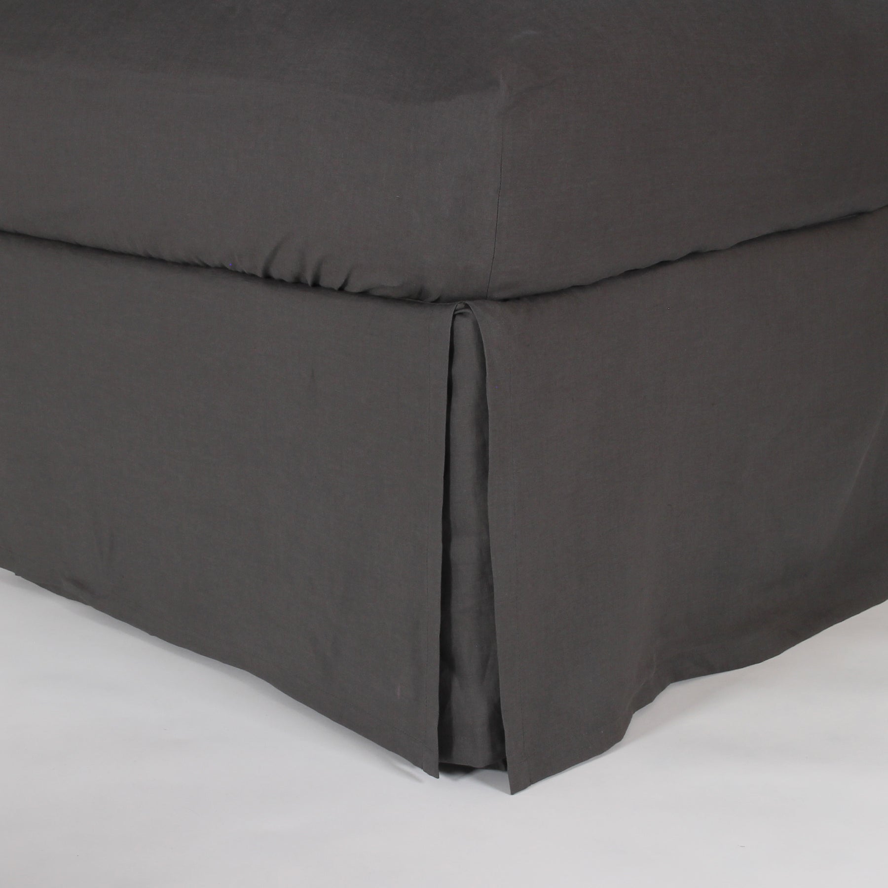 Bettvolant aus Leinen mit offenen Winkeln (Bleigrau)