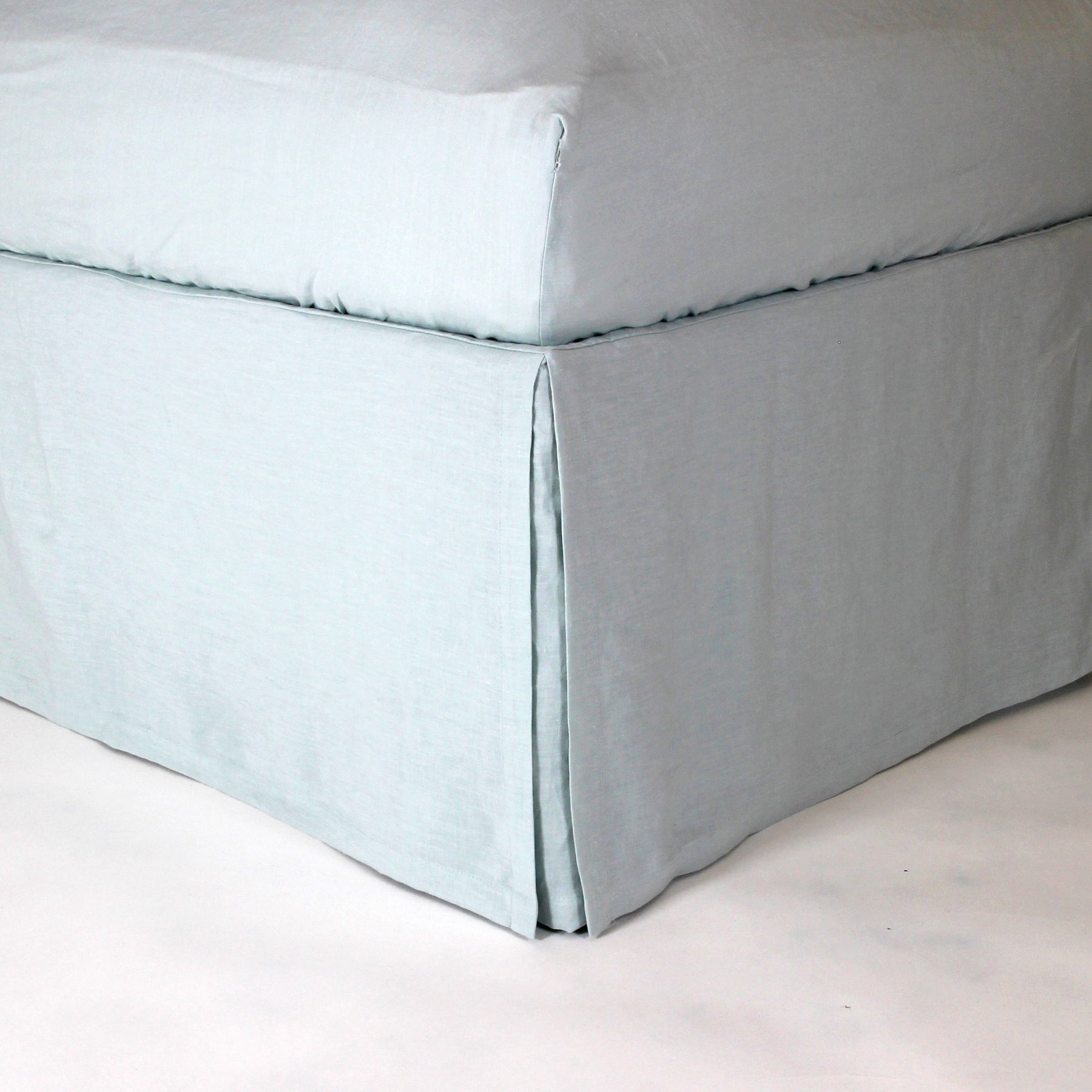 Bettvolant aus Leinen mit offenen Winkeln (Eisblau)