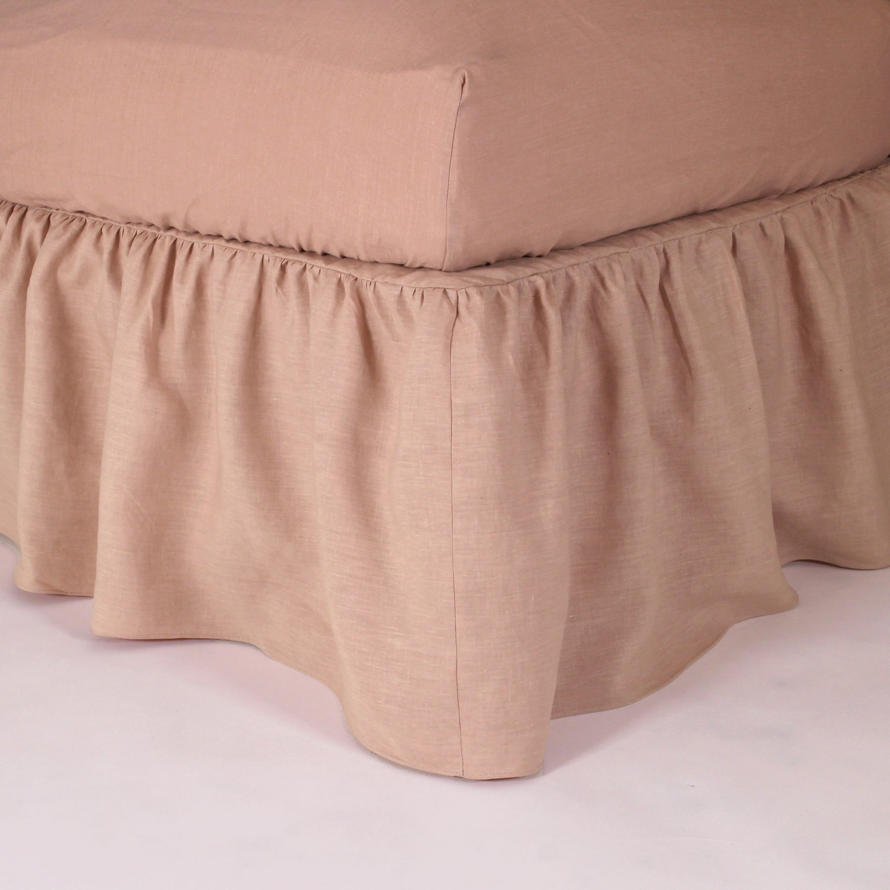 Bettvolant aus Leinen mit langen Rüschen - Rosa