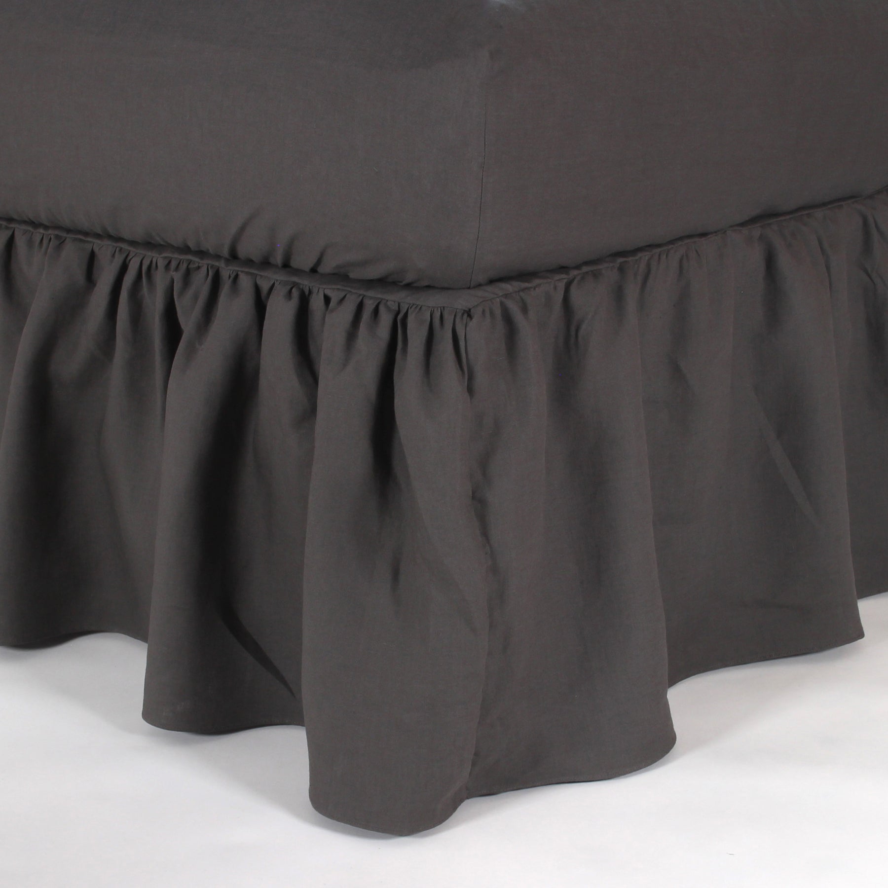 Bettvolant aus Leinen mit langen Rüschen - Bleigrau