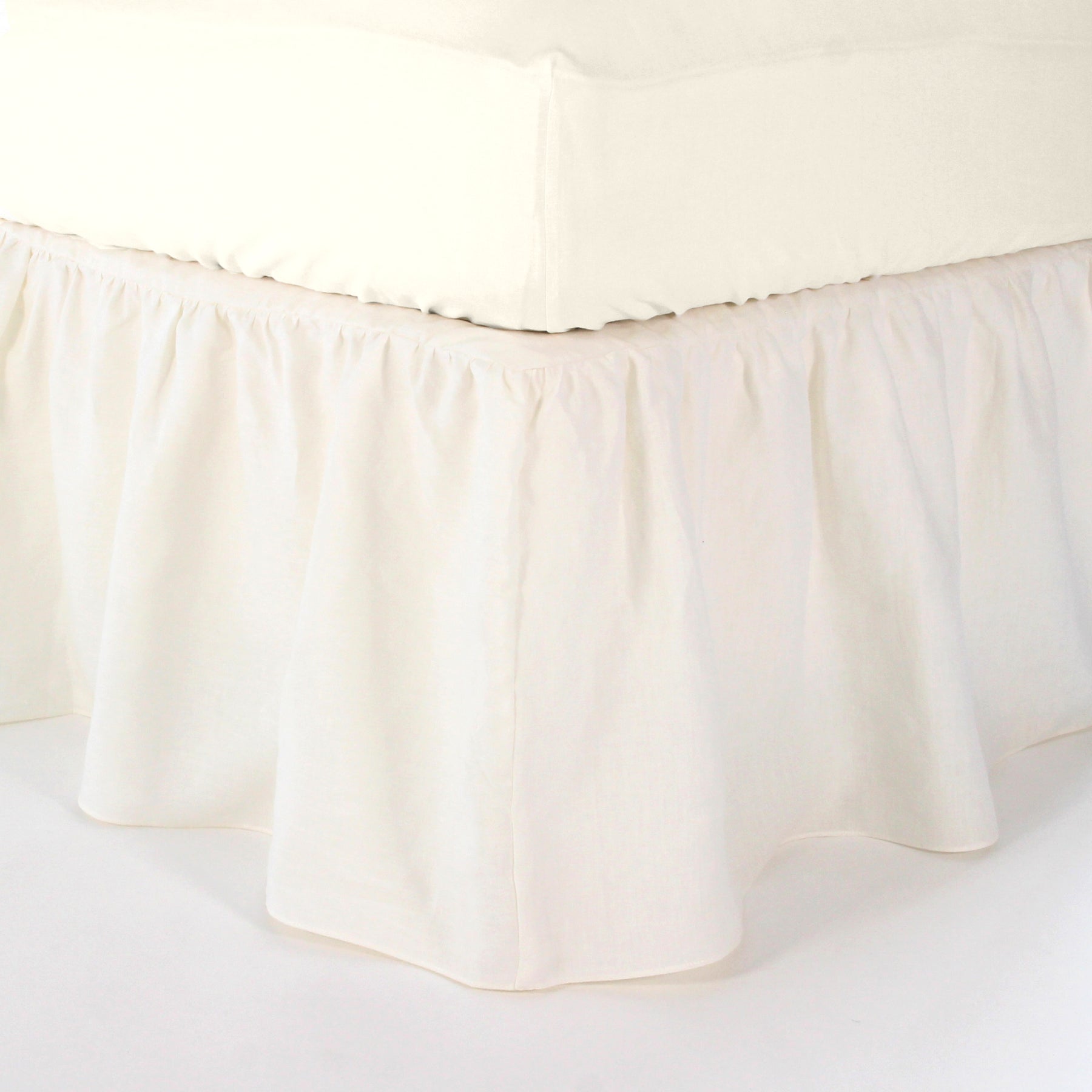Bettvolant aus Leinen mit langen Rüschen (Elfenbein)