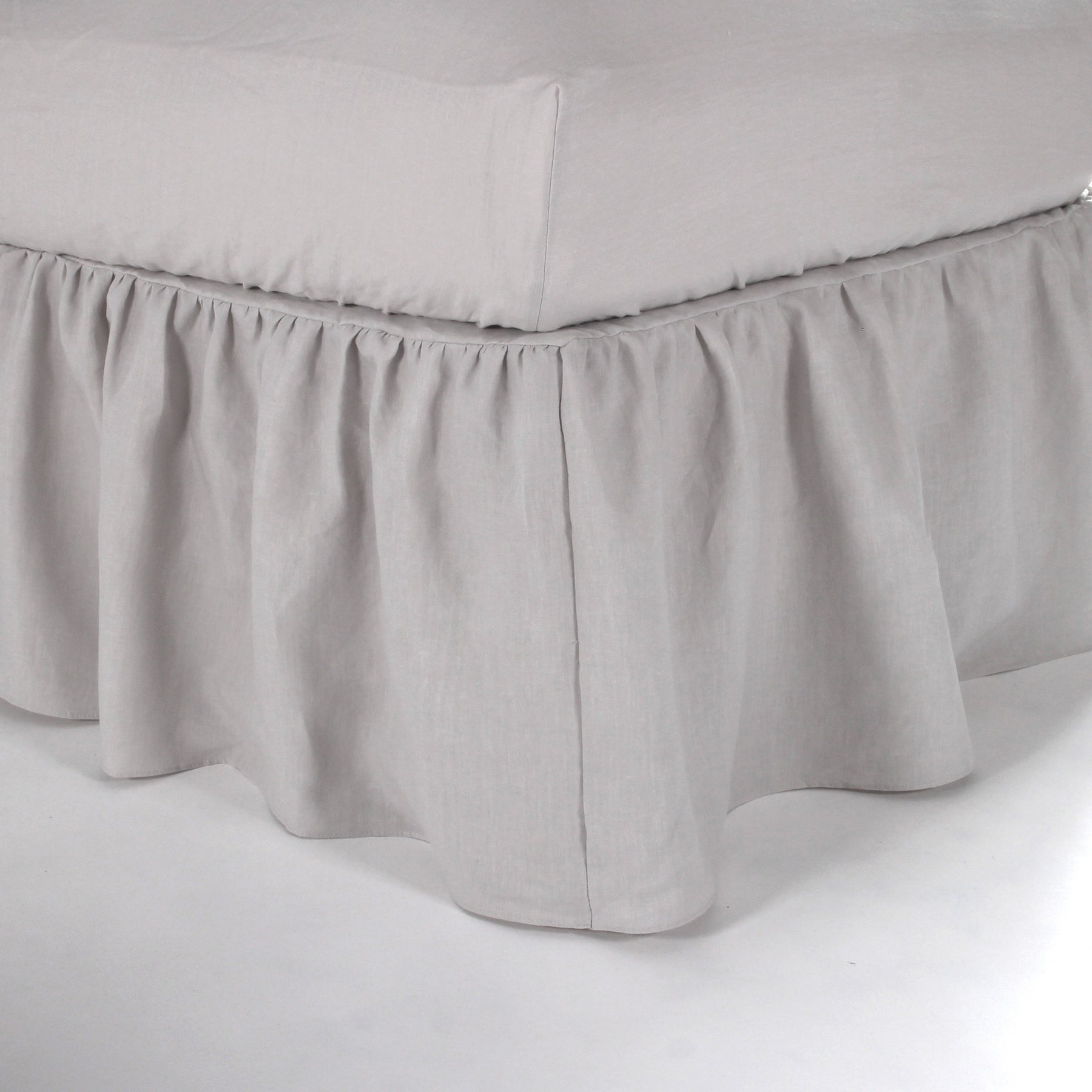 Bettvolant aus Leinen mit langen Rüschen (Mineralgrau)