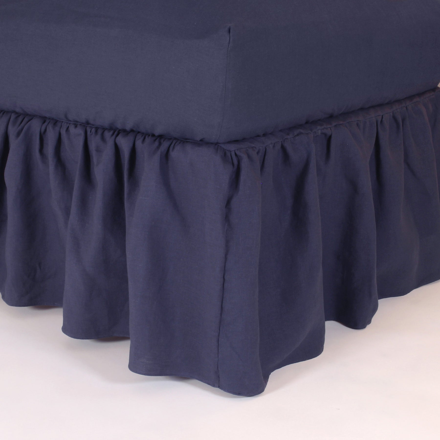 Bettvolant aus Leinen mit langen Rüschen (Nachtblau)
