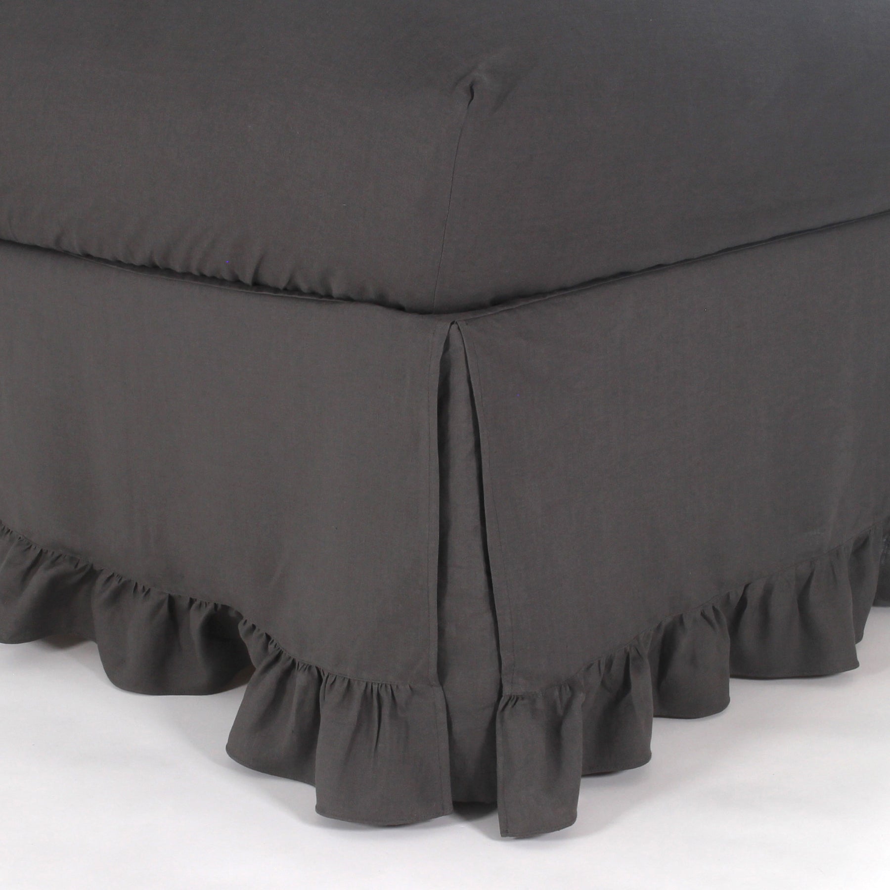 Bettvolant aus Leinen mit Rüschen - Bleigrau