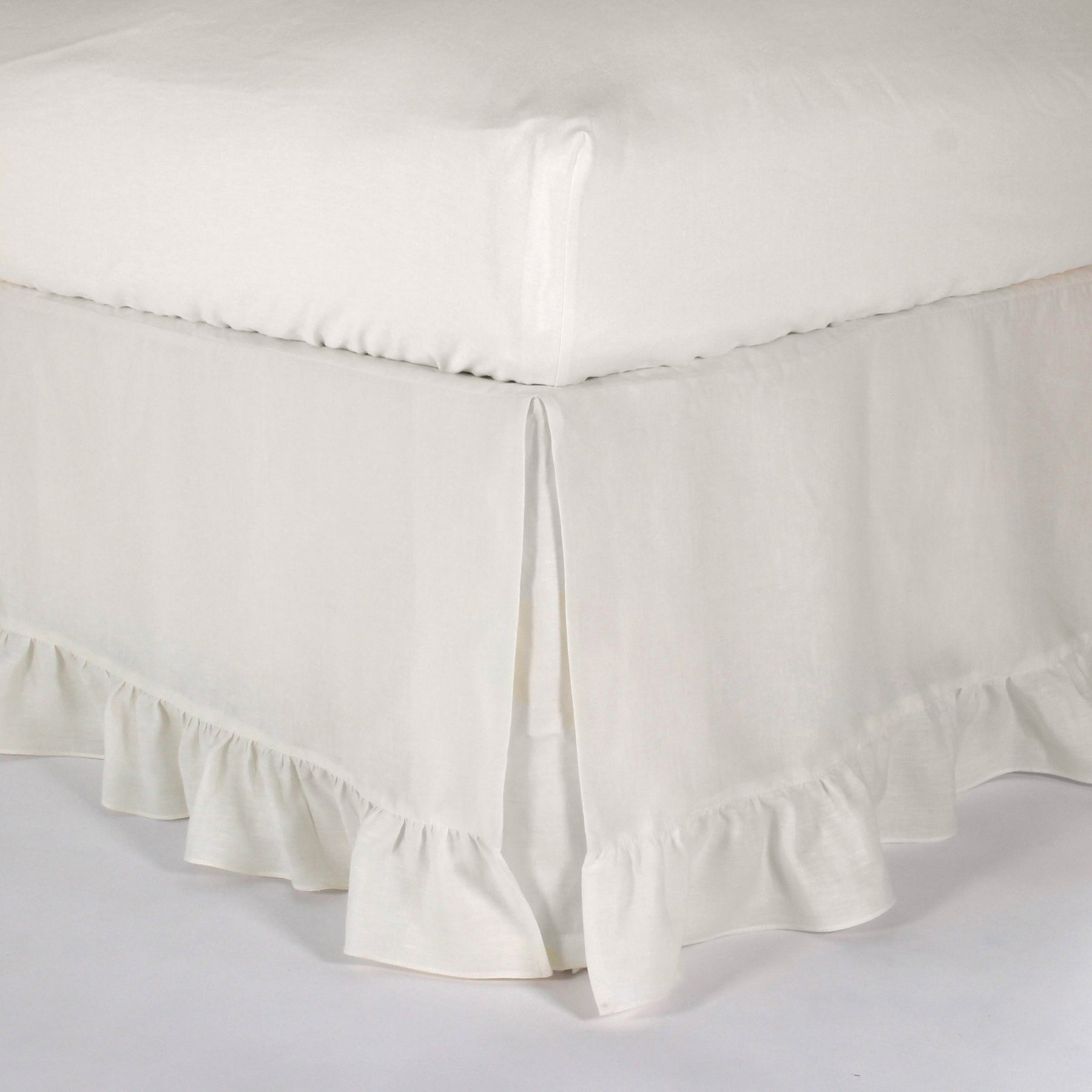 Bettvolant aus Leinen mit Rüschen (Elfenbein)