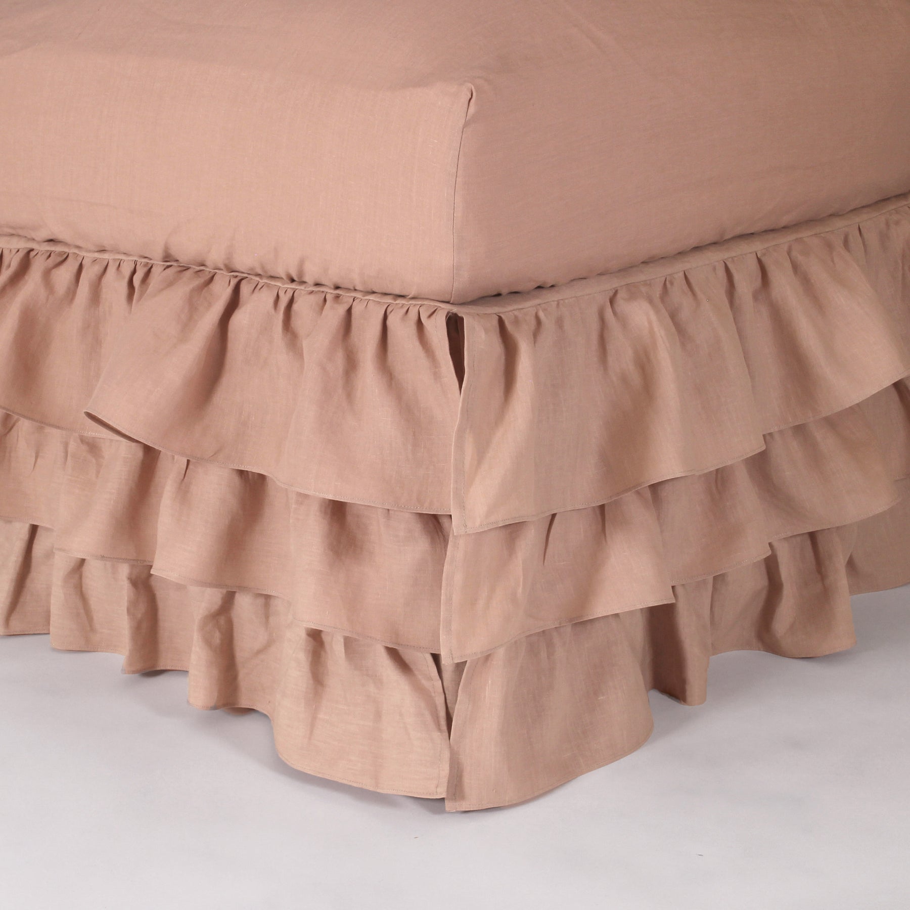 Bettvolant aus Leinen mit Rüschen in Kaskadenform, (Altrosa)