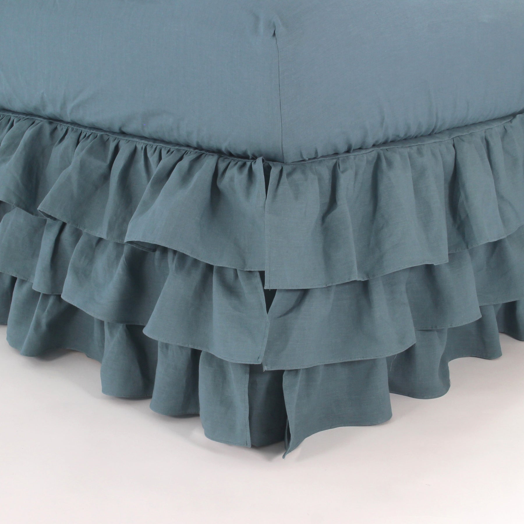 Bettvolant aus Leinen mit Rüschen in Kaskadenform - Französisch Blau