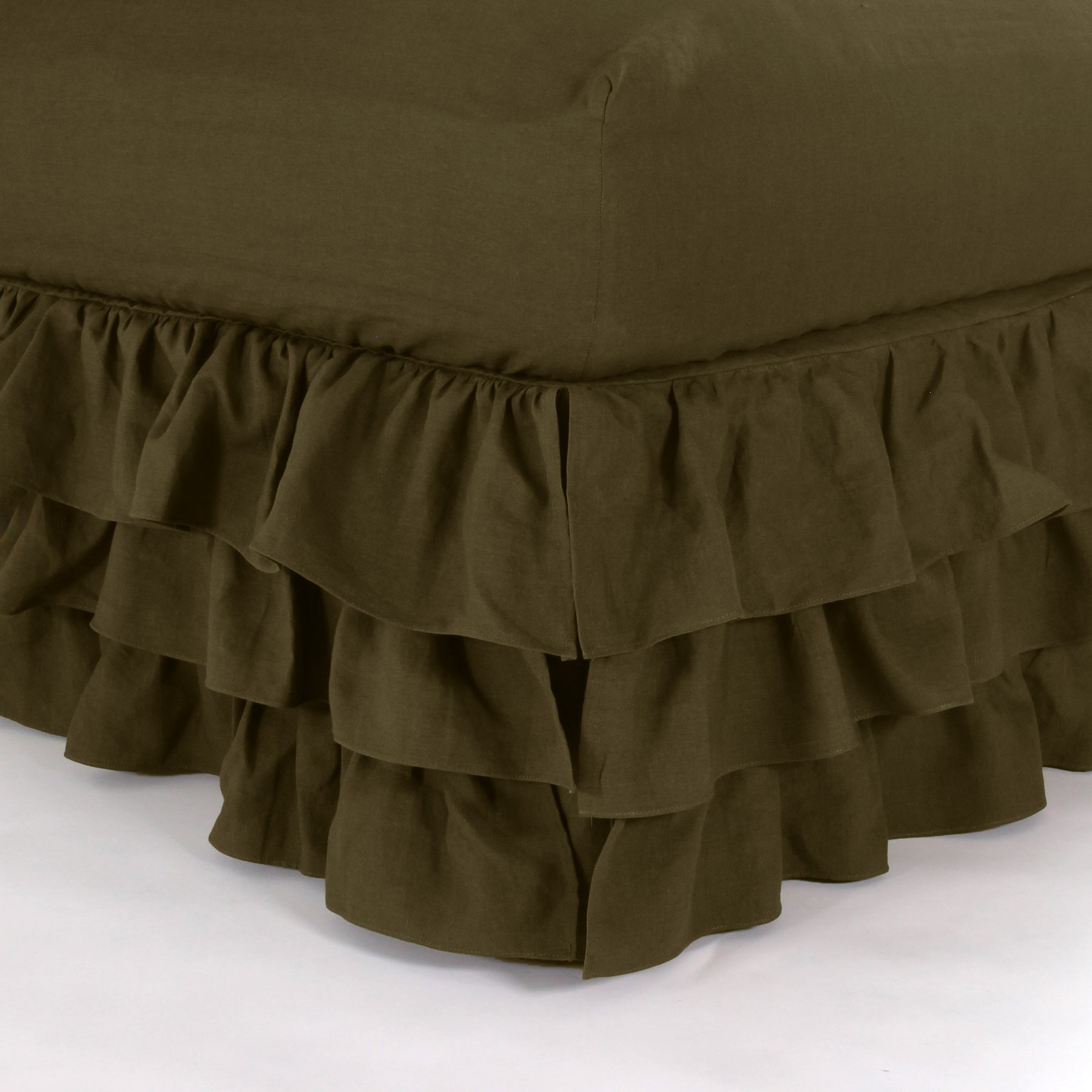 Bettvolant aus Leinen mit Volants in Kaskadenform, (Olivgrün)