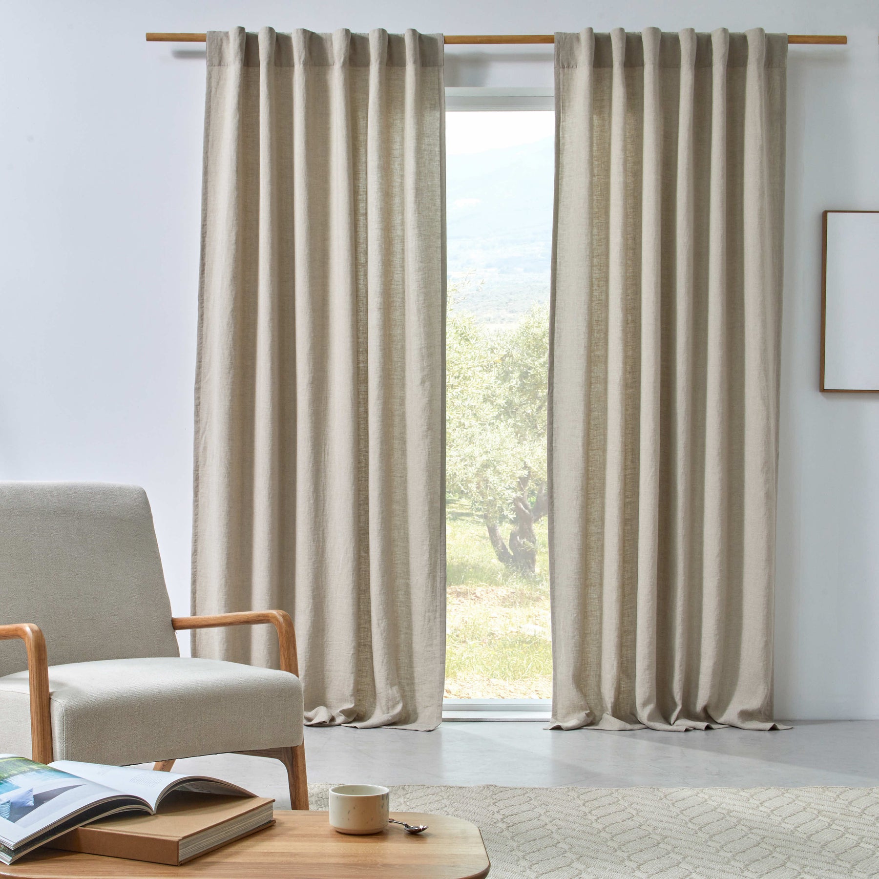 Maßgefertigter Leinenvorhang mit Baumwollfutter in Naturbeige