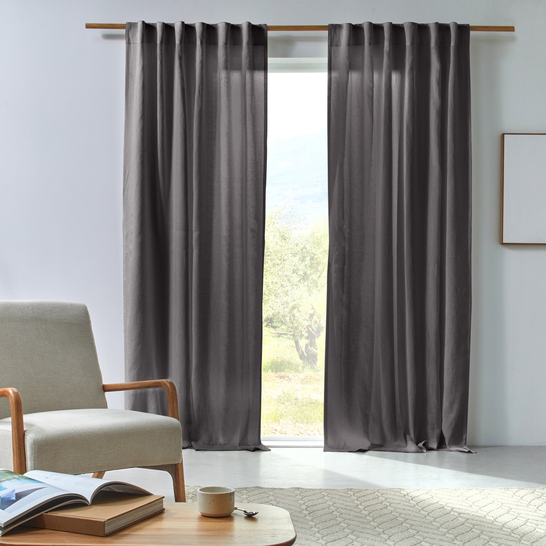 Maßgefertigter Vorhang aus geknittertem Leinen in Bleigrau
