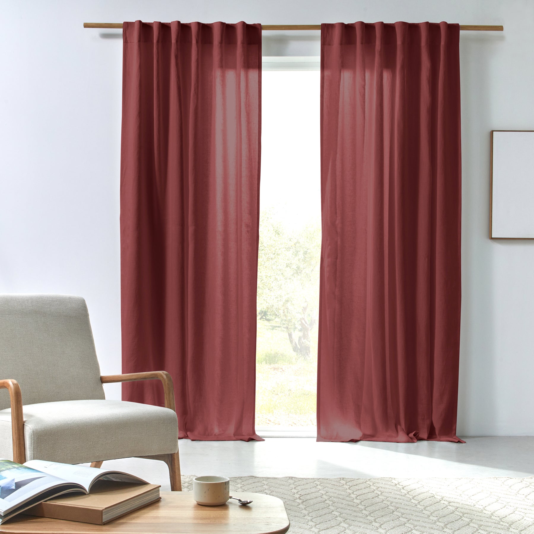 Maßgefertigter Vorhang aus geknittertem Leinen in Ziegelrot