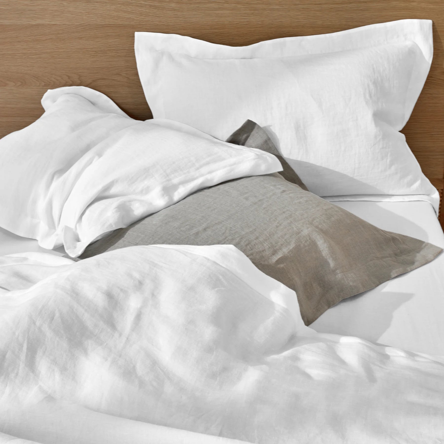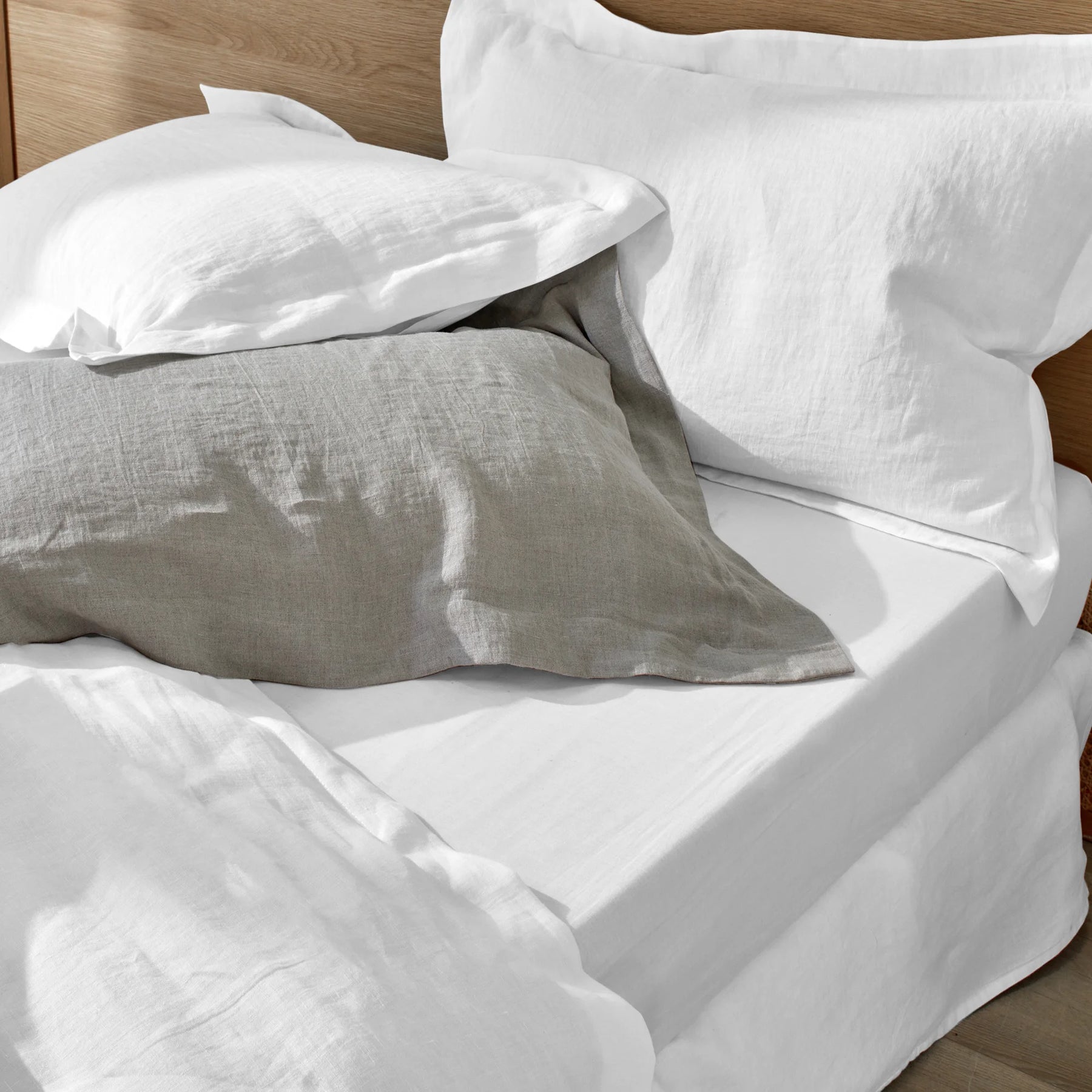 Set aus 2 Kissenbezügen mit flachen Rüschen aus Optikweißem Leinen