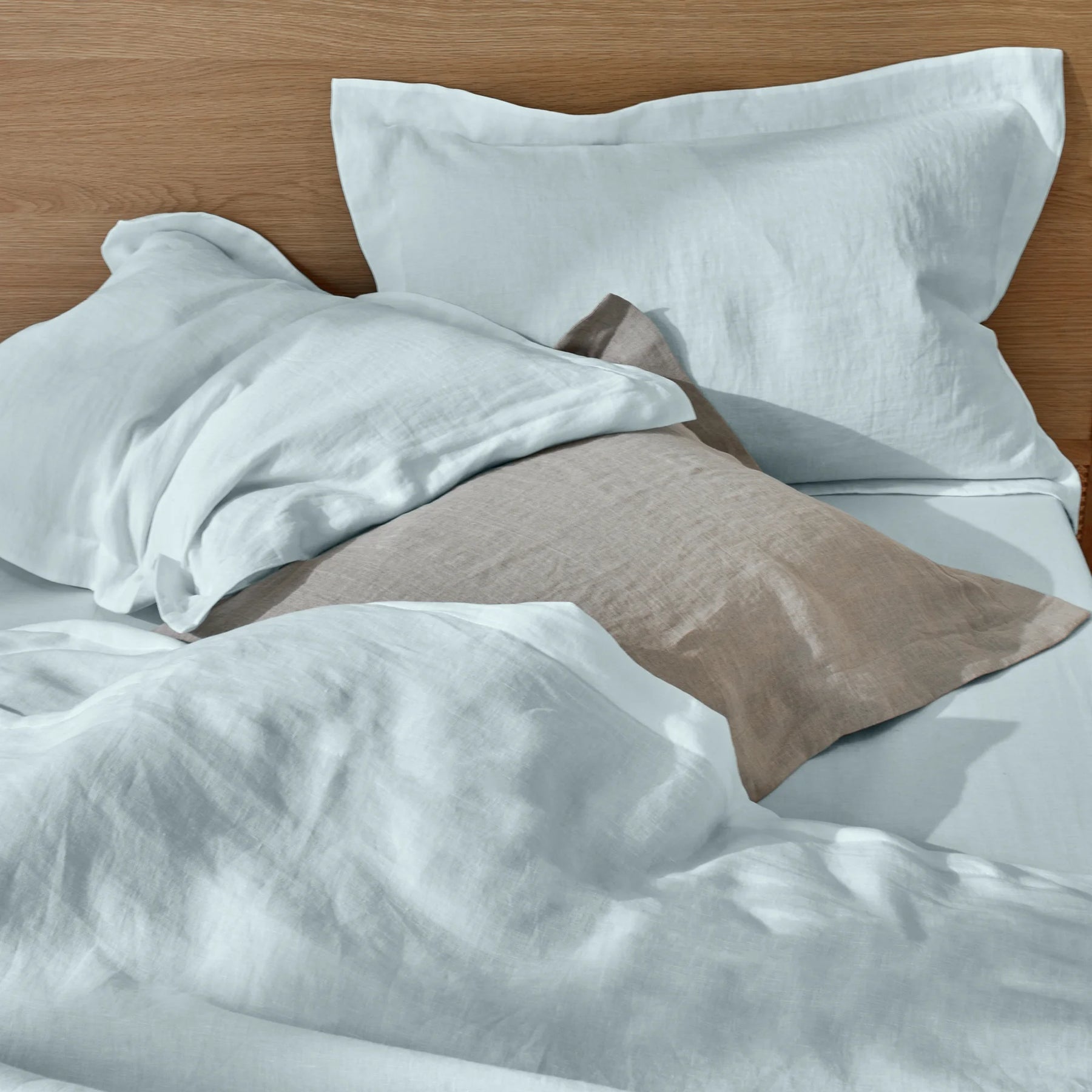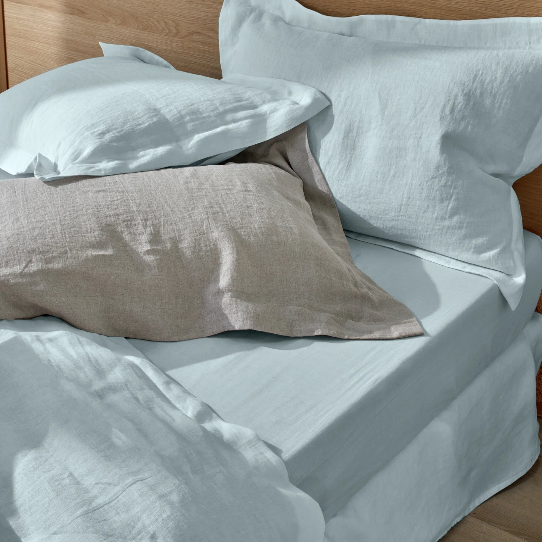 Set aus 2 Kissenbezügen mit flachen Rüschen aus eisblauem Leinen