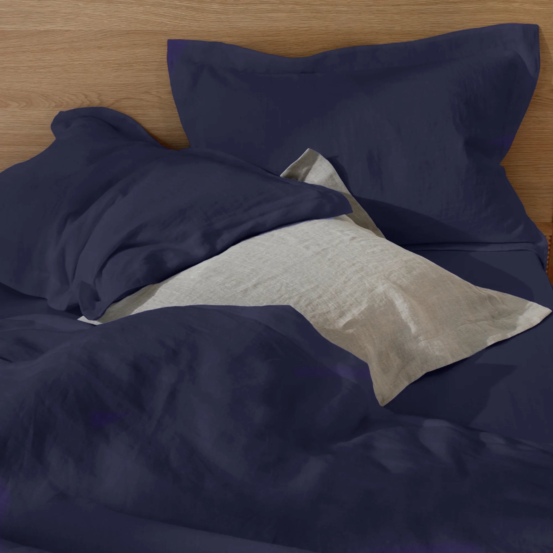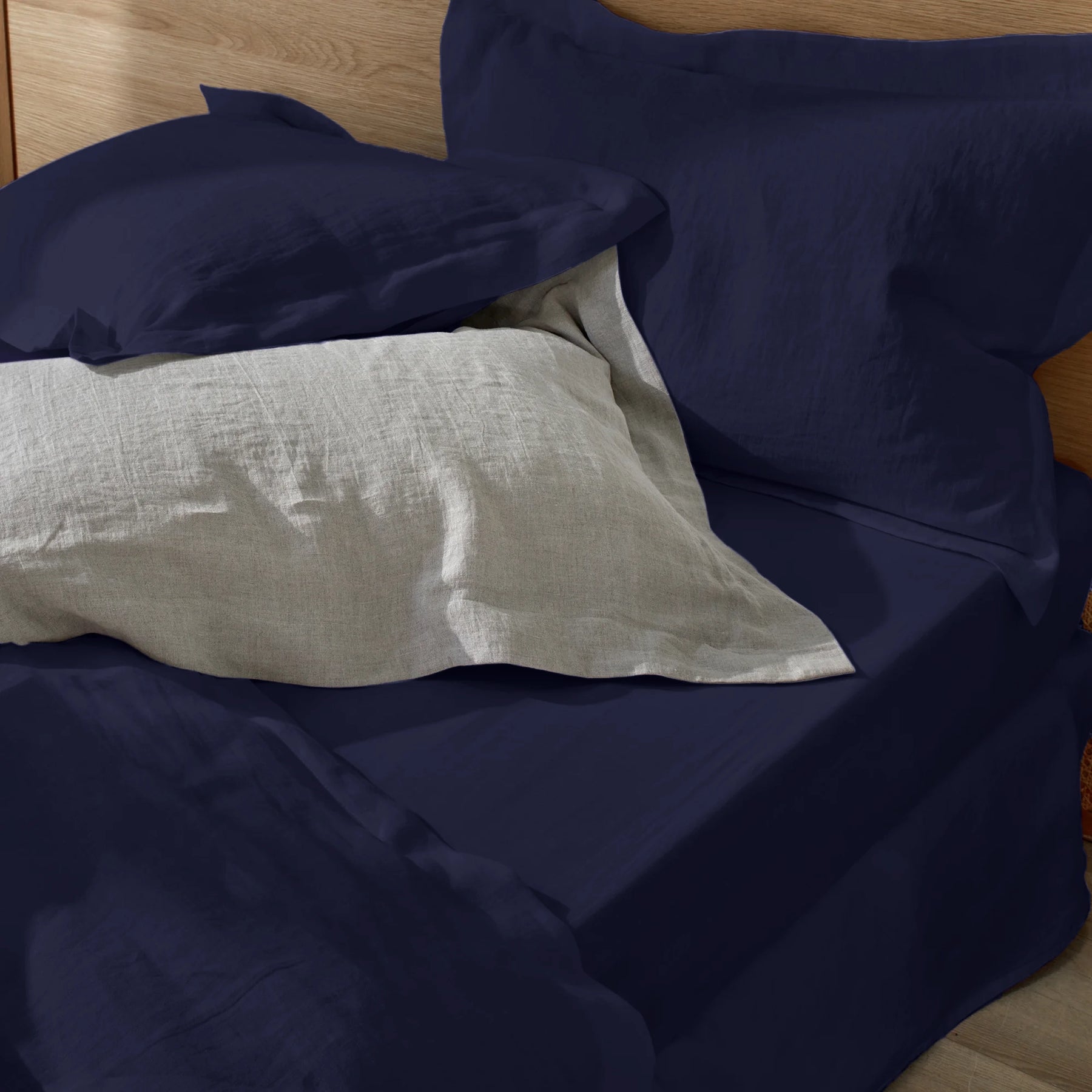Set aus 2 Kissenbezügen mit flachen Rüschen aus Nachtsblauem Leinen