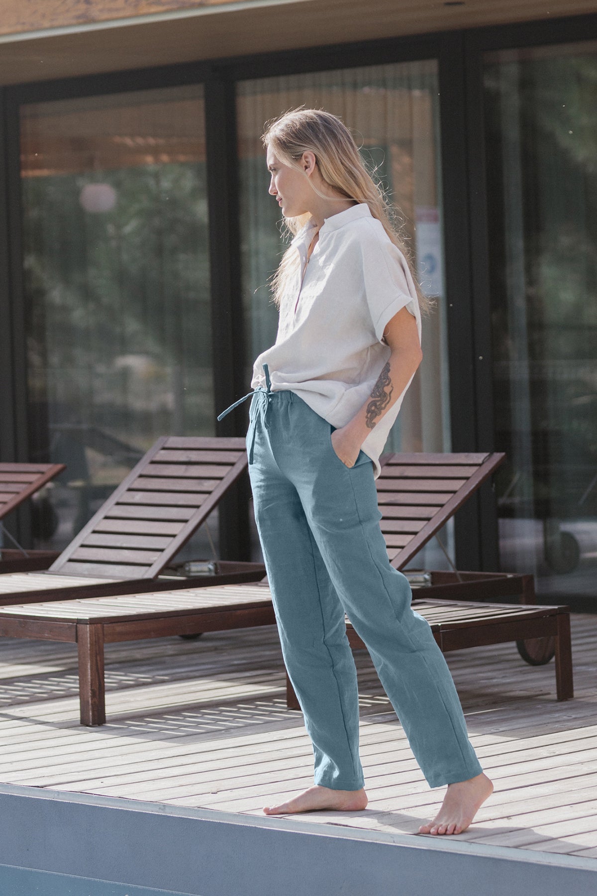 Lässige Leinenhose für Frauen "Eliane" (Französisch Blau)
