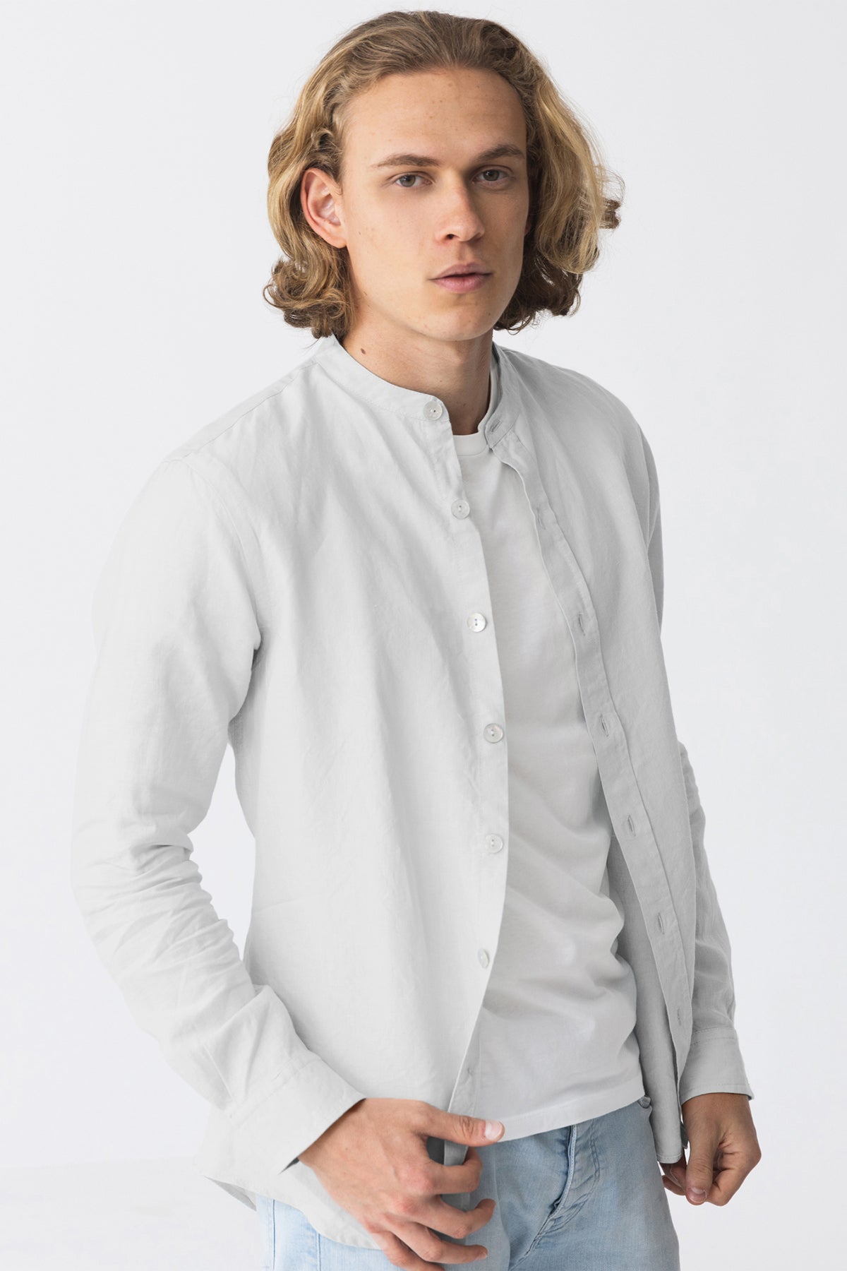Stehkragen-Leinenhemd in optisches weiss - Natanael
