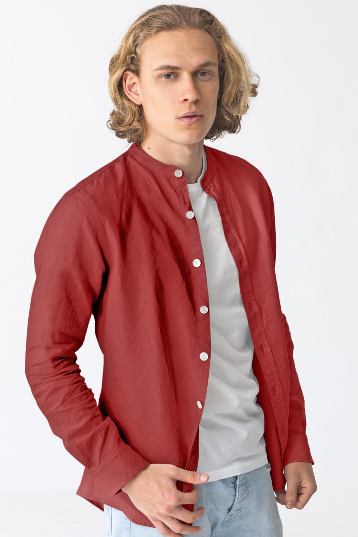 Stehkragen-Leinenhemd in Ziegelrot - Natanael