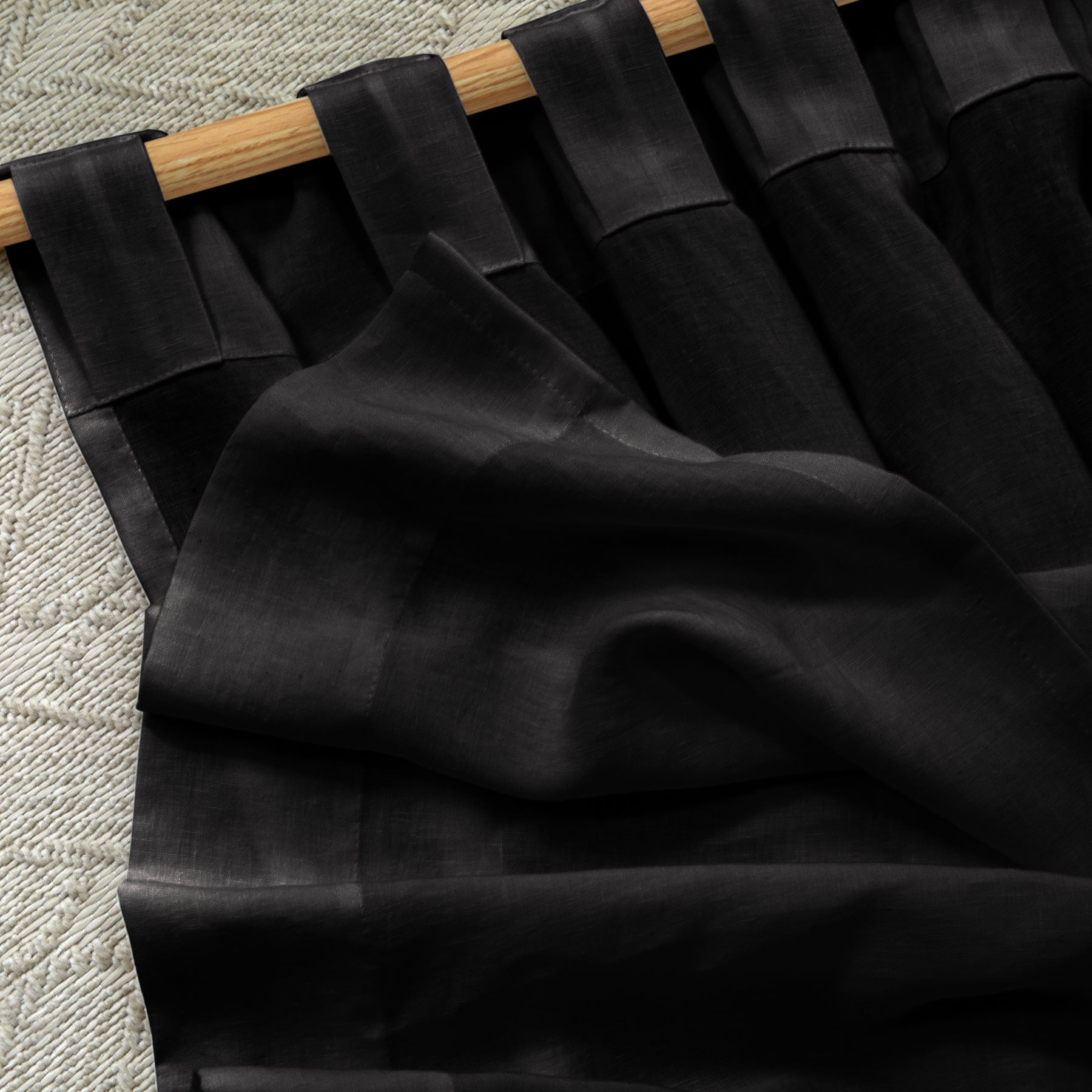 Maßgefertigter Vorhang aus geknittertem Leinen in Tintenschwarz
