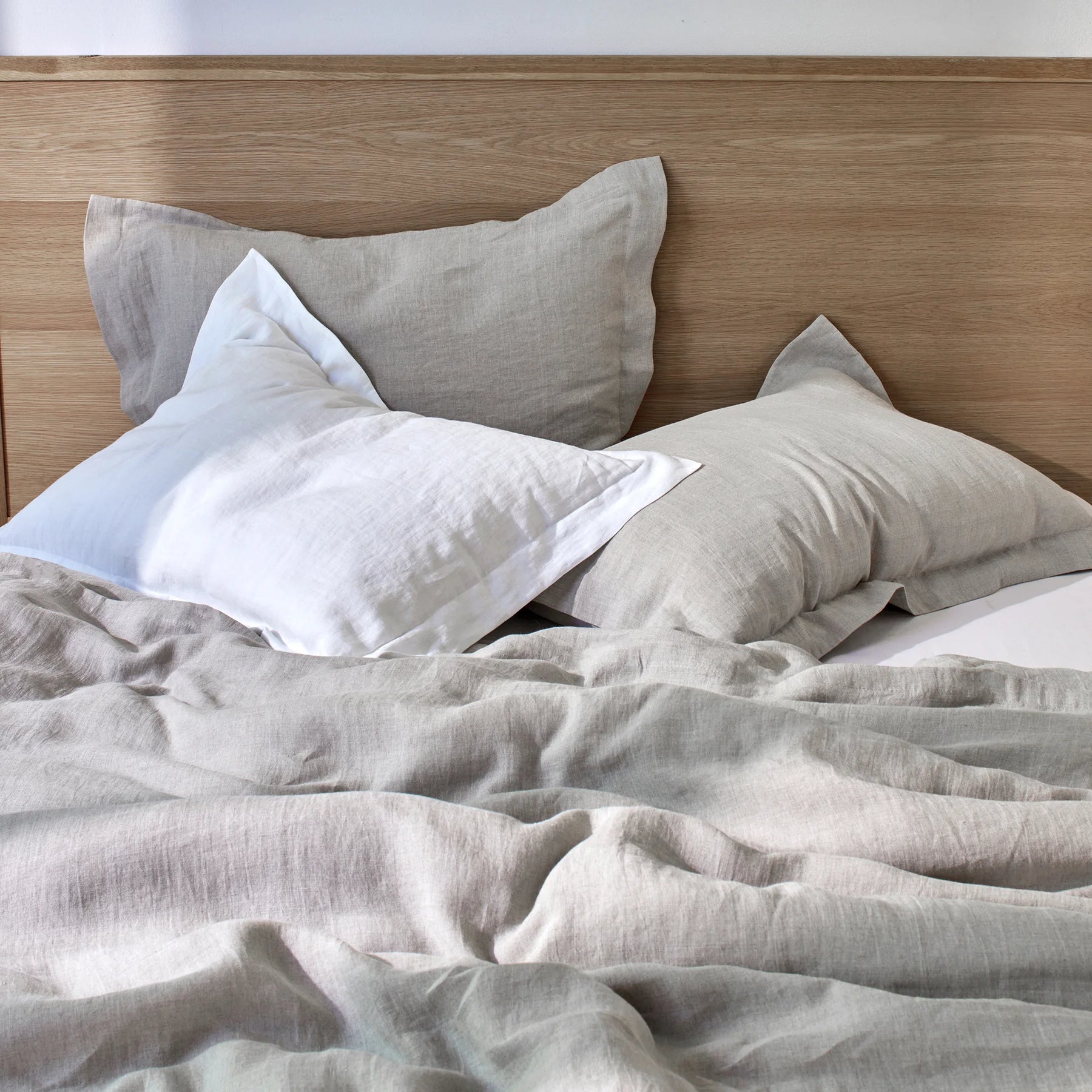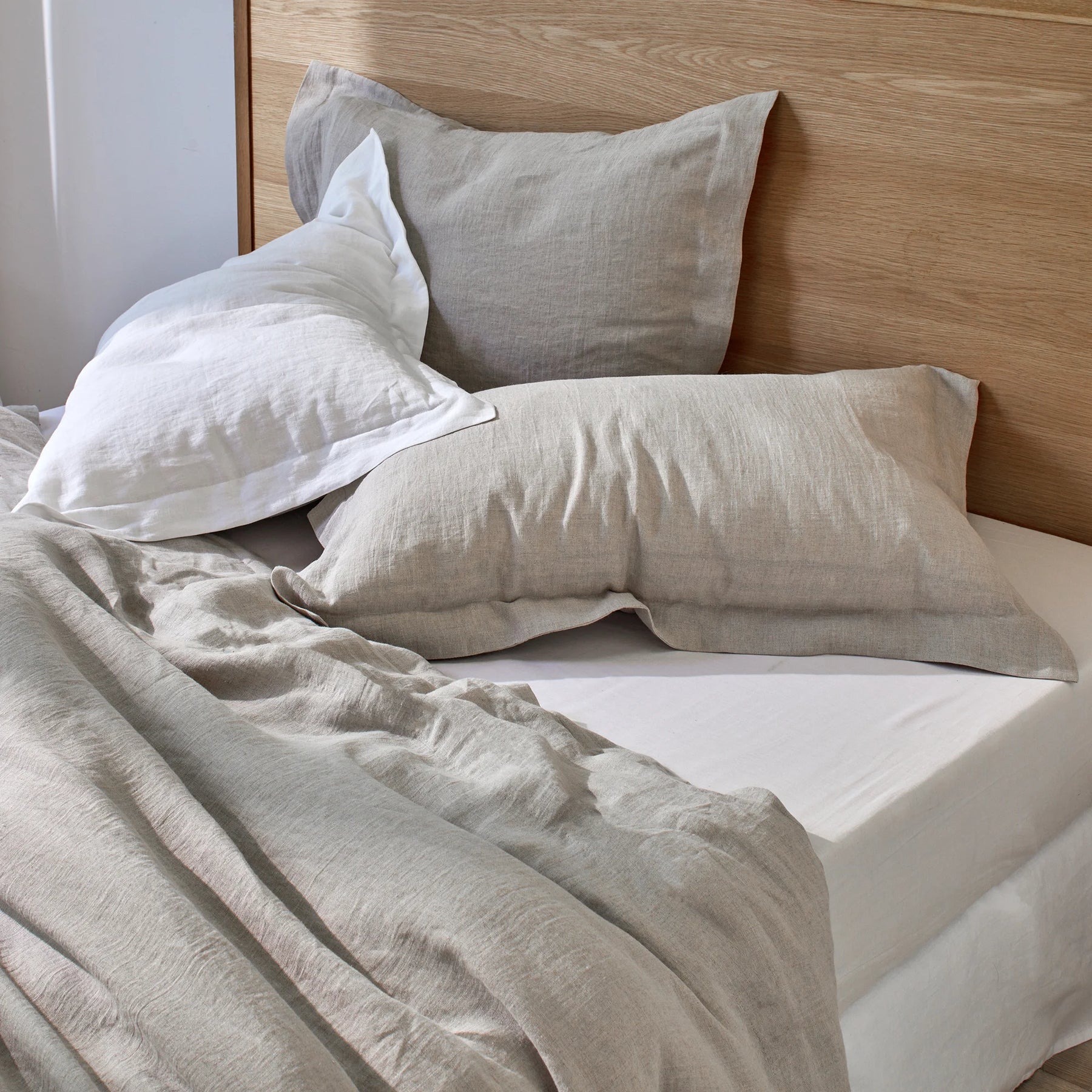 Paar Kissenbezüge mit flachen Rüschen aus naturbeigem Leinen
