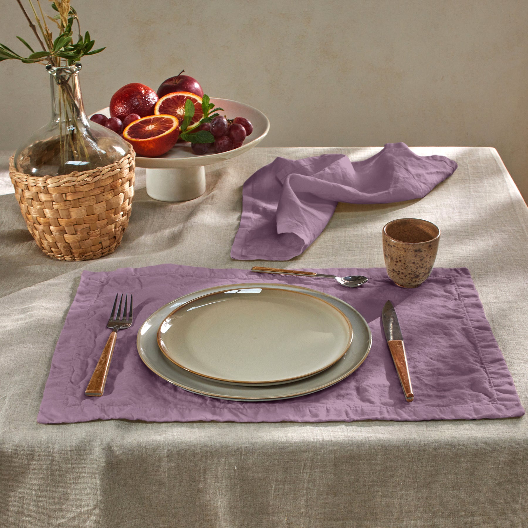 Set aus Tischsets aus fliederfarbenem gewaschenem Leinen