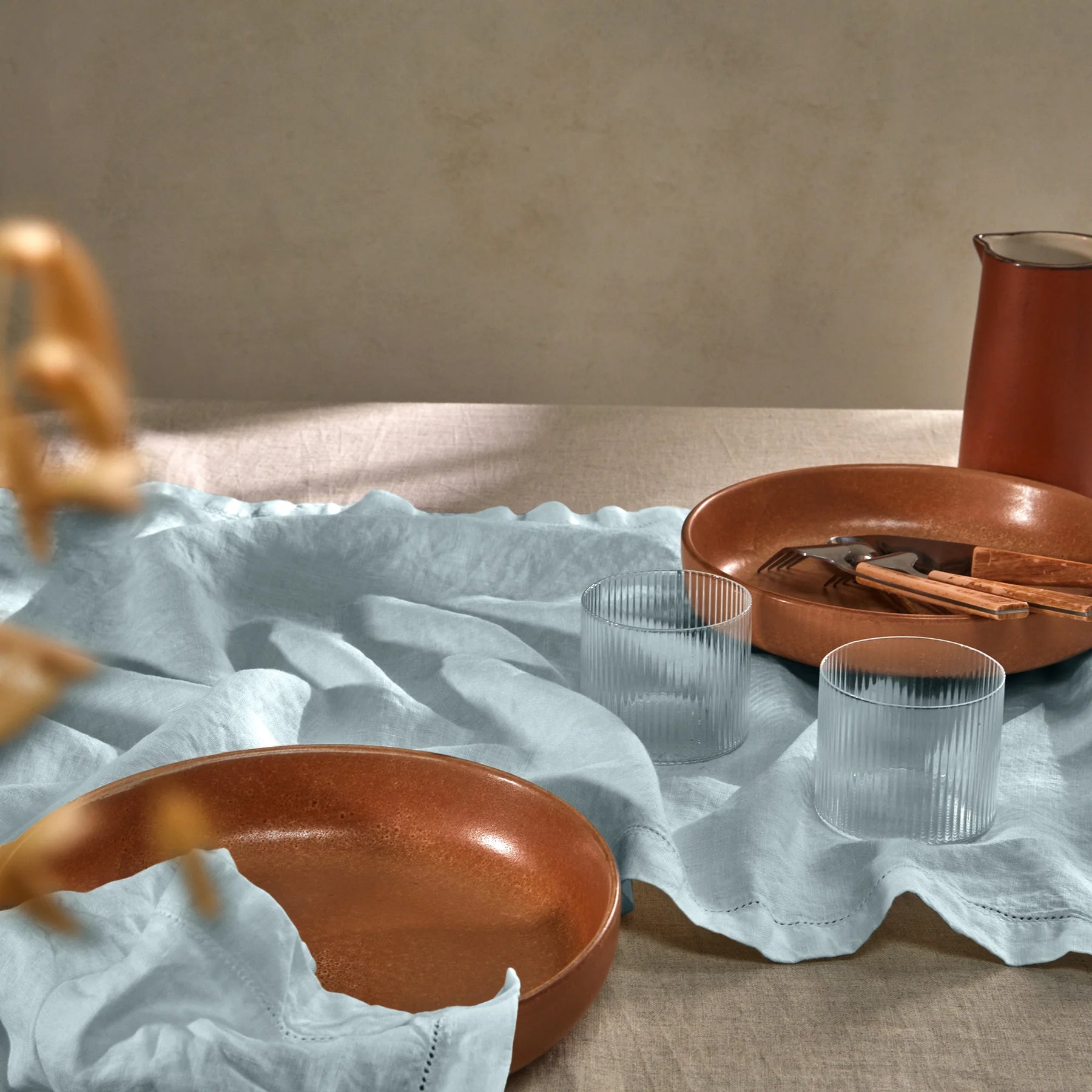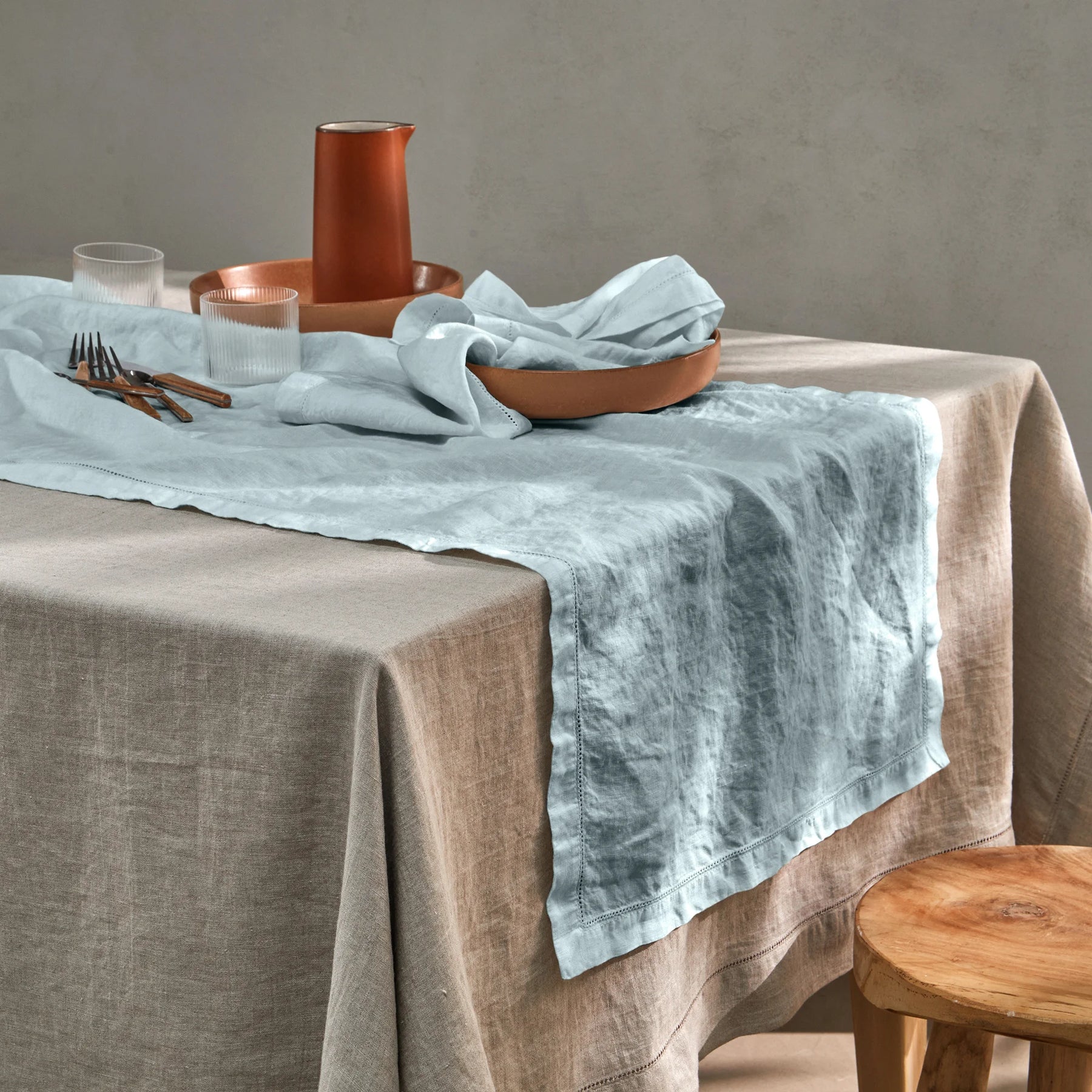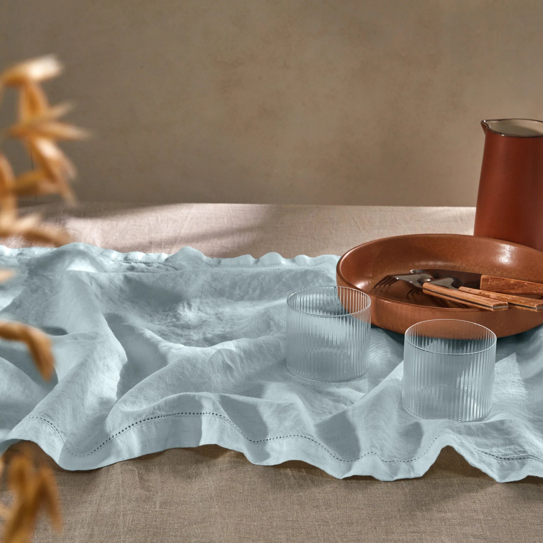 Tischläufer mit Hohlsaum aus gewaschenem Leinen in Eisblau
