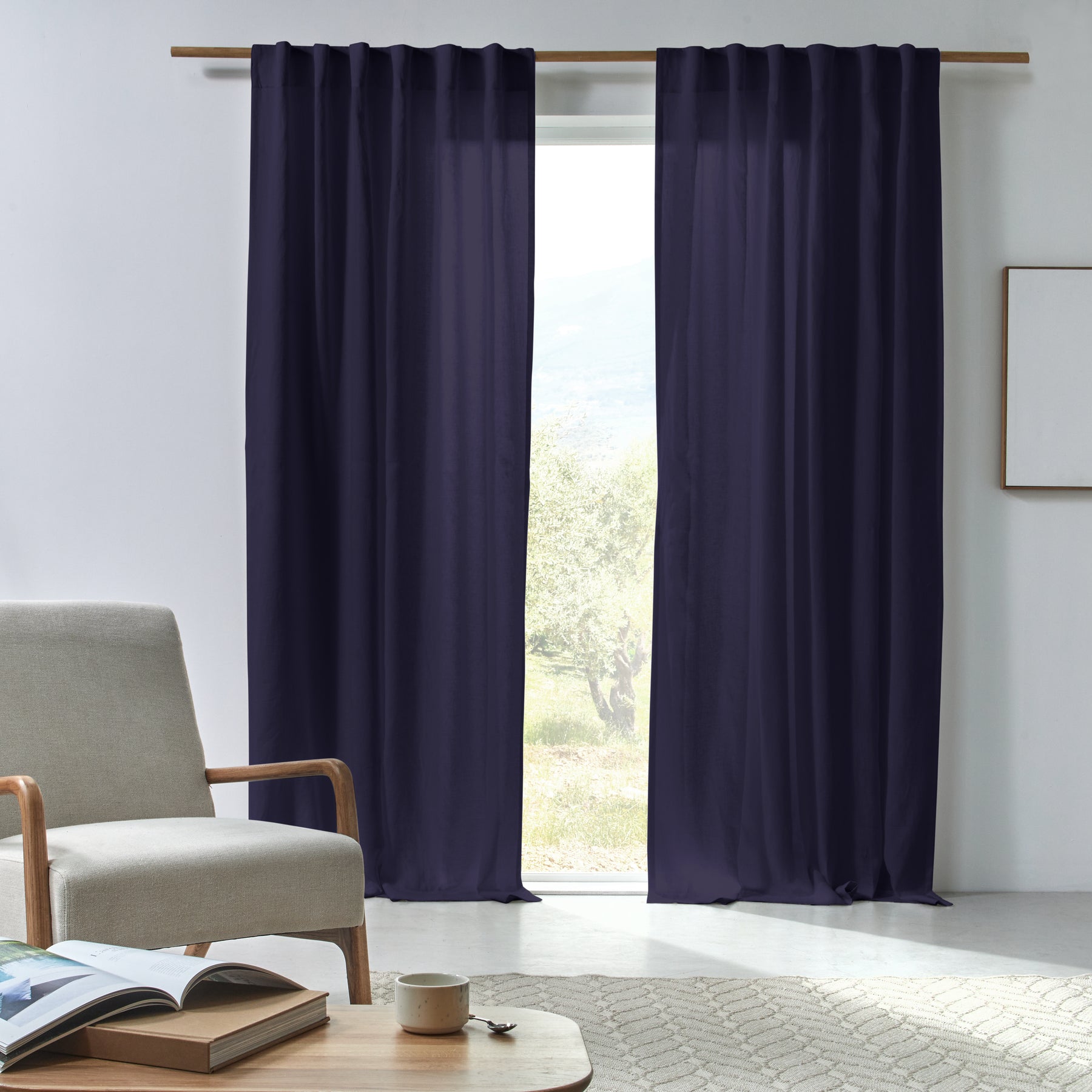 Vorhang aus nachtblauem geknittertem Leinen